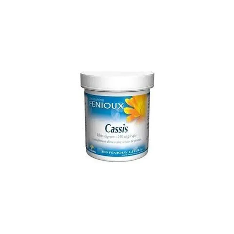 Complemento alimenticio a base de extracto de grosellero negro (Cassis) en envase de 200 cápsulas.