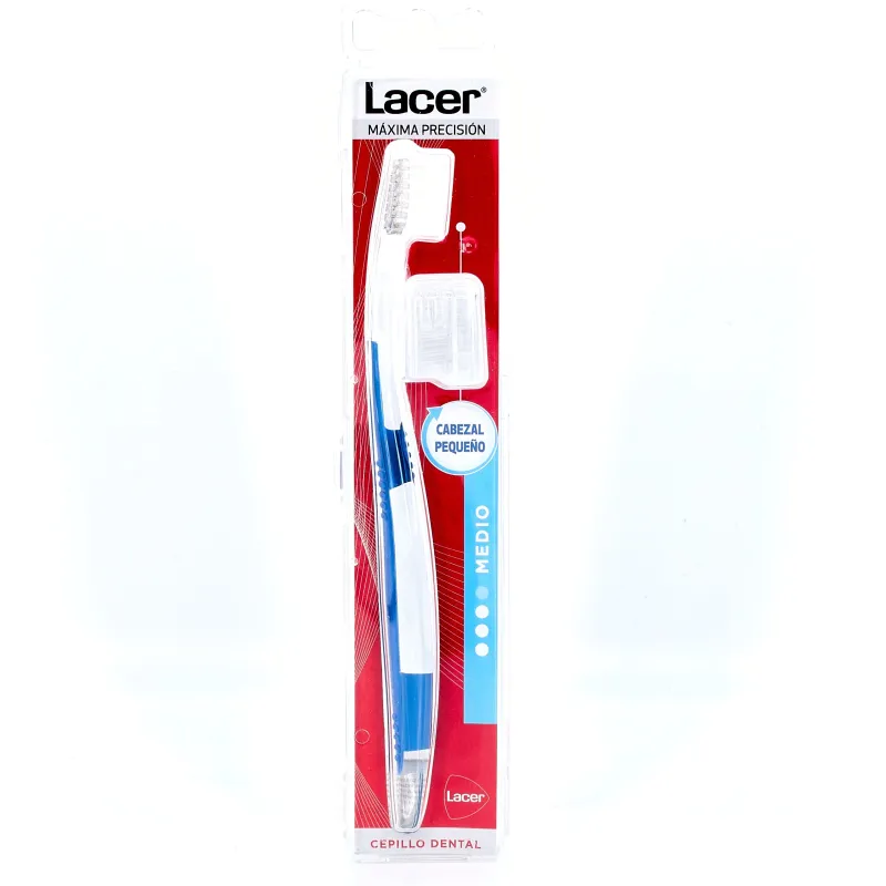 Lacer Cepillo Dental Adultos Medio Cabezal Pequeño permite una limpieza bucodental completa y de precisión.