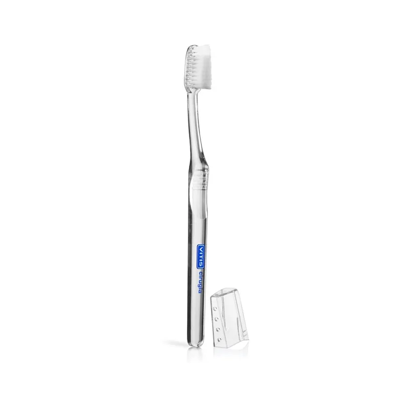 El cepillo dental Vitis cirugía tiene unos filamentos muy suaves para una higiene bucodental adecuada después de una intervención quirúrgica.