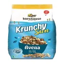 Muesli Krunchy Sun Avena de Barnhouse es una mezcla de copos de avena integral ecológica, harina de trigo integral y otros cereales cubiertos con un glaseado de azúcar de caña y aceite de girasol, horneada hasta alcanzar su característica textura crujiente. Se elabora sin aceite de palma ni conservantes artificiales, siguiendo métodos de producción sostenible que respetan el origen de los cereales. Destinado a quienes buscan un desayuno rápido, nutritivo y de origen vegetal, este muesli es apto para dietas vegetarianas y veganas, y se puede incorporar en múltiples preparaciones.