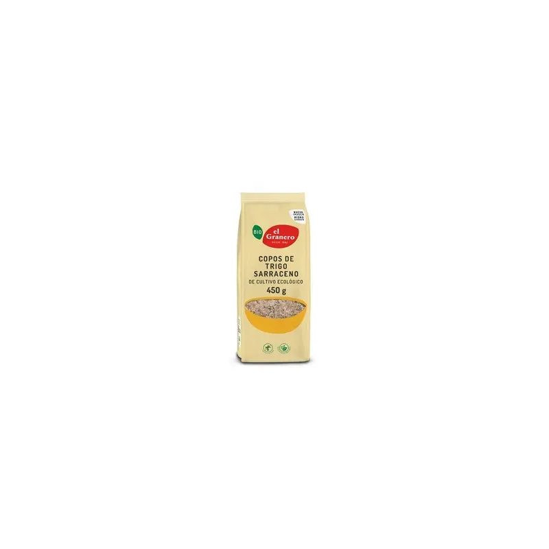 Los Copos de Trigo Sarraceno BIO GRANERO 450 g son un cereal integral procedente del grano de trigo sarraceno de cultivo ecológico. Están pensados para integrarse en la alimentación diaria como base de desayunos, meriendas o recetas diversas, aportando un producto de origen vegetal y libre de gluten.