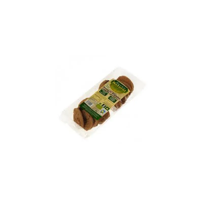 Envase de 180 g con cierre hermético. Ingredientes: harina integral de espelta (60%), sirope de ágave (15%), aceite de girasol, canela en polvo (2%), anís verde, gasificantes (bicarbonato sódico y amónico).