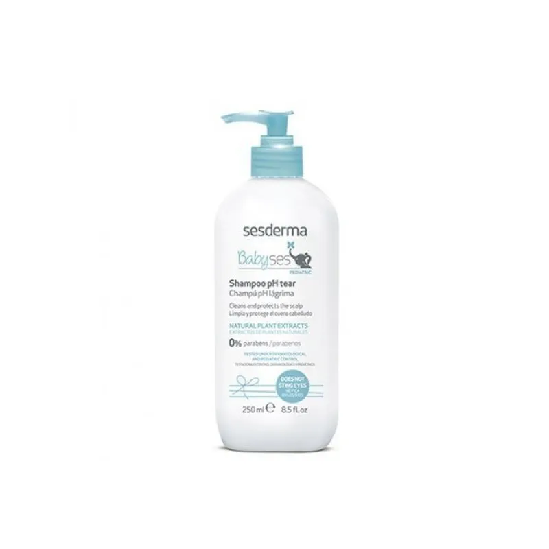 BabySes Champú pH de Sesderma lágrima realiza una completa acción limpiadora al tiempo que protege el cuero cabelludo del bebé con una composición basada en activos naturales y no irritante. De acción regenerante, calmante e hidratante.