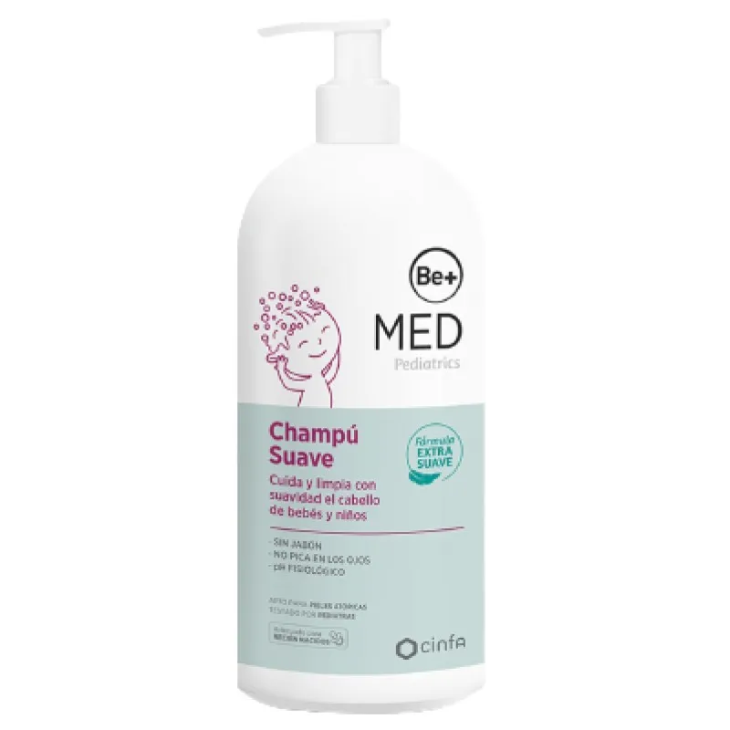 Limpia suavemente el cabello de tu hijo con BE+ Med Pediatrics Champú Suave, 300 ml. Ideal para cabello fino y cuero cabelludo sensible.