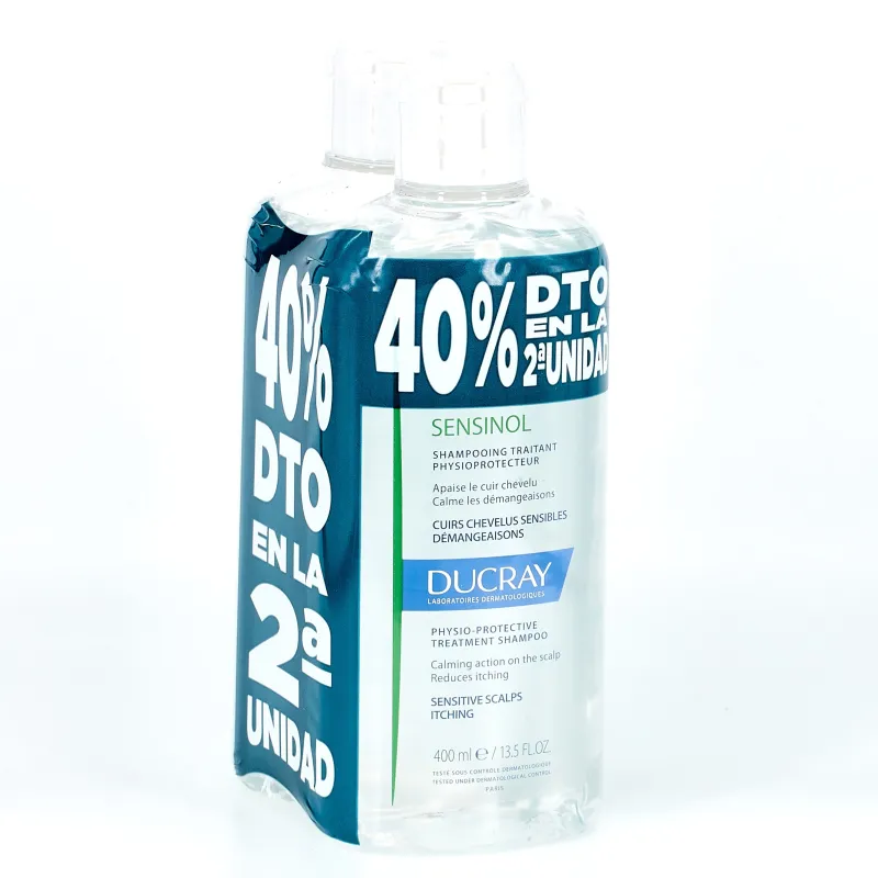 El pack DUPLO de Ducray Sensinol Champú incluye 2 envases que contiene 400 ml.