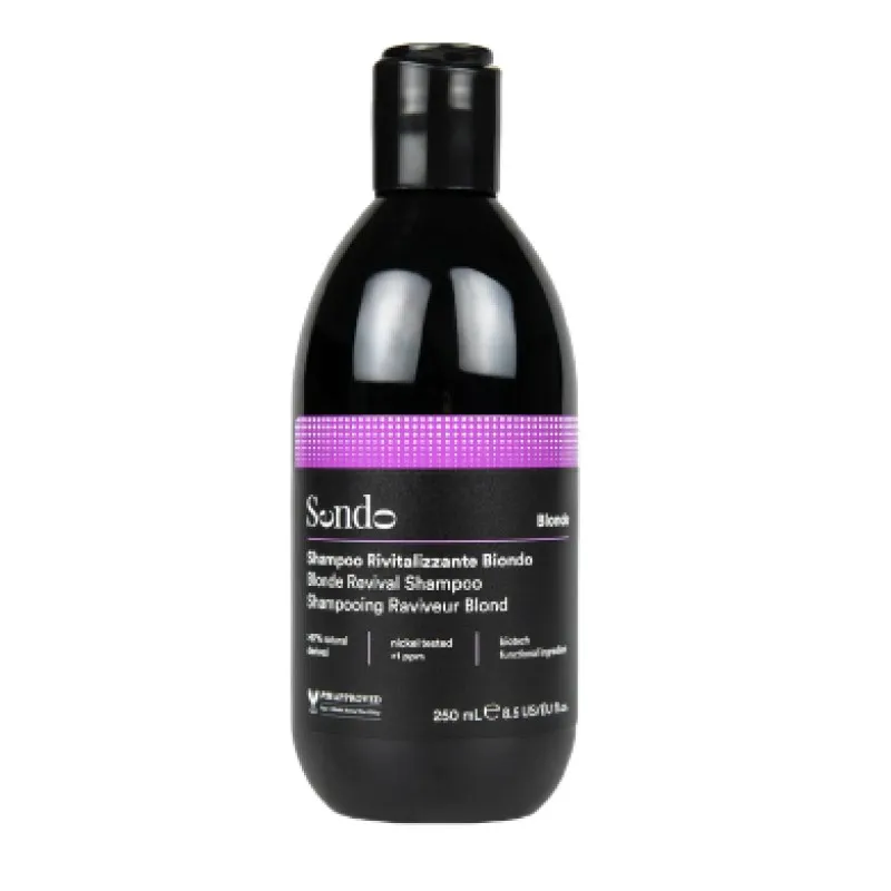 Sendo Blonde Revival Shampoo es un champú especialmente compuesto para el cuidado del cabello rubio. Con una capacidad de 250 ml, este champú está diseñado para mantener y realzar el tono rubio natural o teñido, proporcionando brillo y eliminando los tonos amarillentos indeseados.