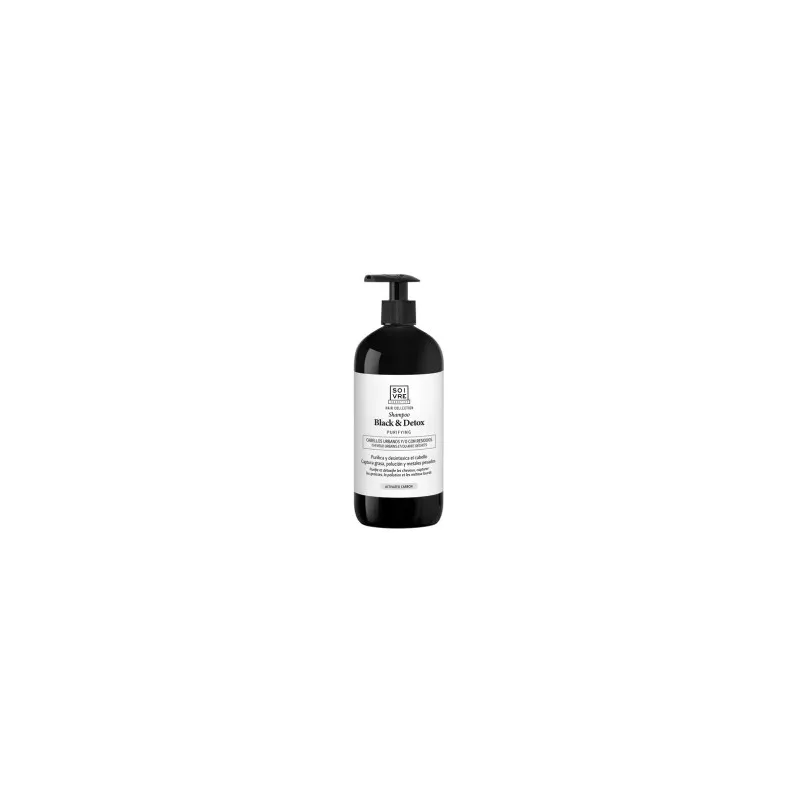 Soivre Black & Detox es un champú formulado con ingredientes activos naturales, como arcilla negra, carbón activo y aceite de argán, que aportan al cabello brillo, vitalidad y protección contra los agentes externos.