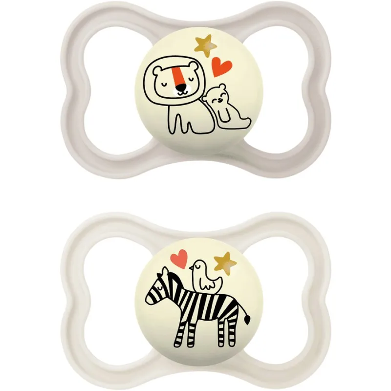 Este chupete es la elección perfecta para tu bebé de 16 meses o más. Con su diseño único, luminiscente, y silicona simétrica sea mucho amigable para la piel, es un chupete de confianza para las noches.