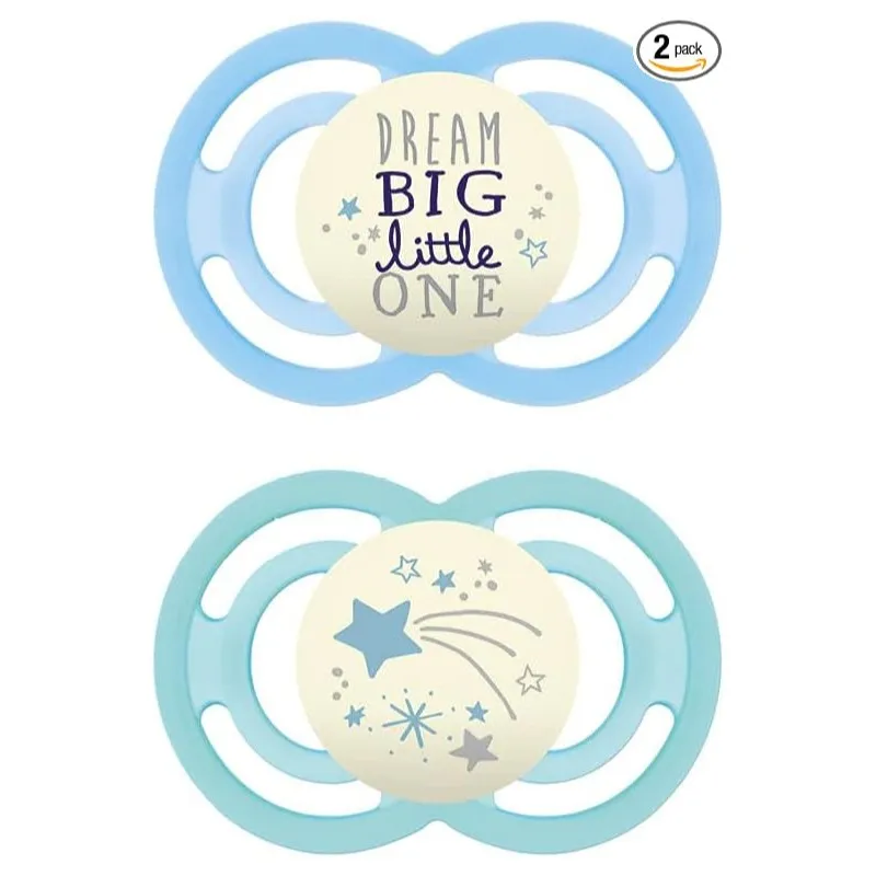 Este chupete sirve para calmar y consolar al bebé, especialmente durante la noche. Su diseño incluye características que lo hacen brillar en la oscuridad, facilitando su localización durante la noche y evitando interrupciones en el sueño del bebé y de los padres.