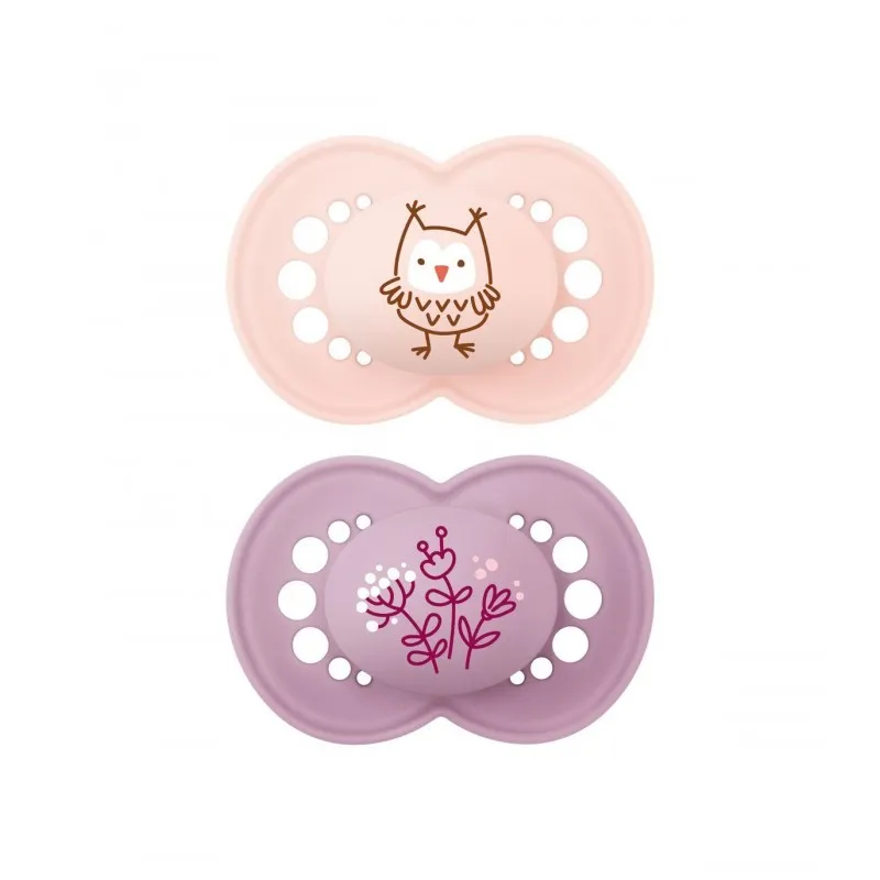 La presentación de MAM Chupete Silicona Original Matt Rosa +6M contiene 2 unidades de chupetes.