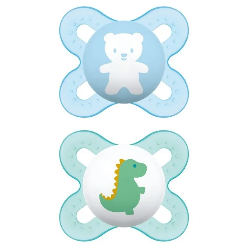 MAM Chupete Silicona Perfect Start Azul 0-2M son chupetes diseñados para bebés de 0 a 2 meses, desarrollados con especialistas, amigables con la piel y que apoyan el desarrollo oral saludable, incluyendo una caja esterilizadora.