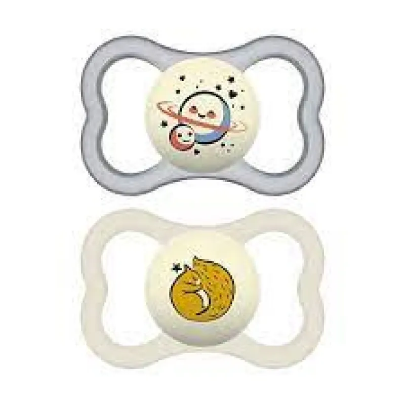 MAM Chupete Silicona Simetrica Supreme Night Neutro +6M son chupetes diseñados para bebés mayores de 6 meses. Estos chupetes cuentan con la particularidad de brillar en la oscuridad, facilitando su localización durante la noche y ofreciendo un diseño neutro y elegante.