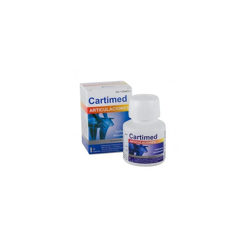 Cartimed Articulaciones se presenta en un envase con 60 cápsulas, protegido con cierre de seguridad. Cada frasco aporta suministro para un mes según la dosis recomendada, con etiquetado conforme a la legislación vigente.
