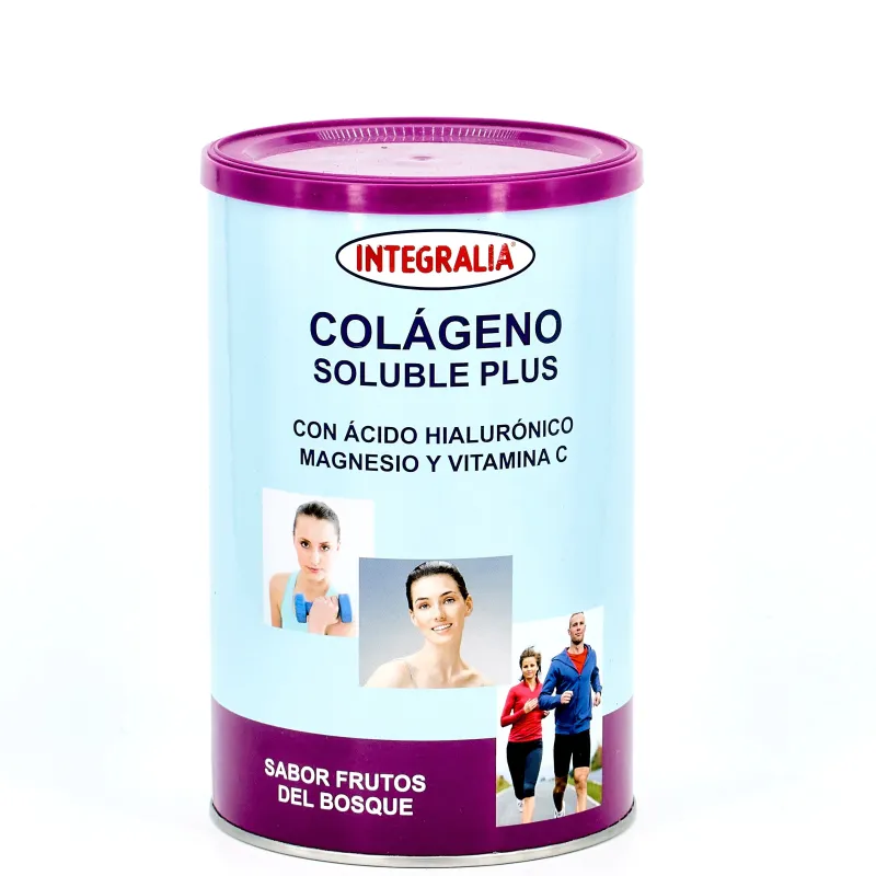 Colágeno soluble Plus Integralia Frutas del bosque es un complemento alimenticio diseñado para ofrecer un aporte extra de colágeno hidrolizado junto con ácido hialurónico, magnesio y vitamina C. Con un sabor afrutado, esta fórmula está pensada para aquellas personas que deseen completar su ingesta diaria de nutrientes que participan en el mantenimiento de la estructura proteica del organismo. Su presentación en polvo soluble permite una toma sencilla y agradable, adaptándose a distintas preferencias de consumo.