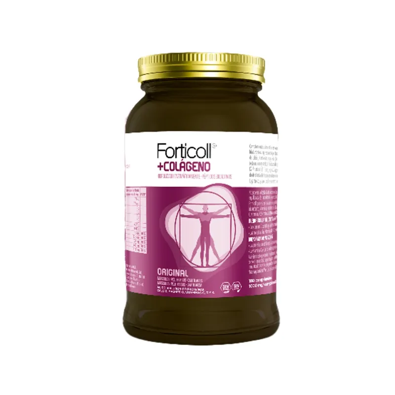 Forticoll® +Colágeno es un complemento alimenticio en comprimidos que combina péptidos bioactivos de colágeno Fortigel®, vitaminas C, D, K2-7, sales minerales de calcio y magnesio, y ácido hialurónico. Esta formulación aporta nutrientes necesarios para el mantenimiento del tejido conjuntivo, el estado normal de los cartílagos y huesos, y la función muscular dentro de una dieta equilibrada. El producto se presenta con sabor neutro, sin gluten ni lactosa, lo que facilita su incorporación en diferentes planes dietéticos. Su información cumple con la normativa europea de declaraciones nutricionales y de propiedades saludables.