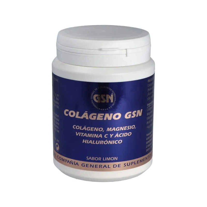 GSN Colágeno Limón es un complemento alimenticio en polvo que combina colágeno hidrolizado tipo II, ácido hialurónico, vitamina C y magnesio en una fórmula con sabor a limón. Esta formulación aporta nutrientes que participan en la formación y mantenimiento de tejidos conectivos, piel, huesos, tendones y articulaciones.