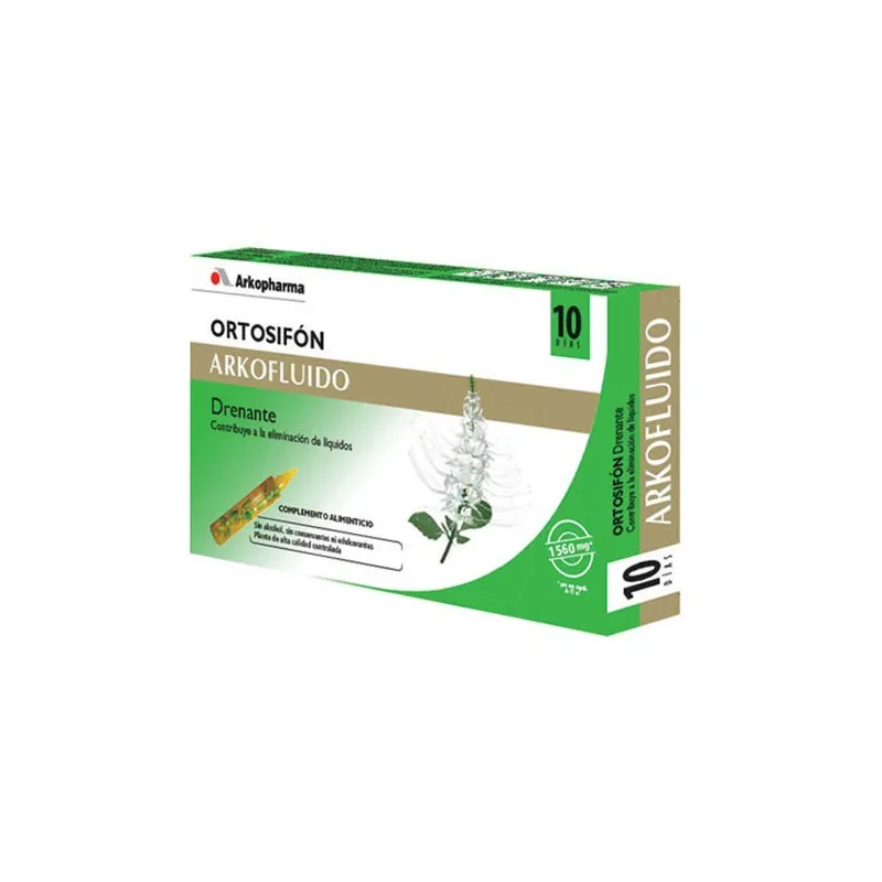 Arkofluido Ortosifón Ampollas es un complemento alimenticio líquido que contiene extracto de Ortosifón (Java tea) con una concentración de 1580 mg por ampolla. Está formulado para apoyar la función de eliminación de líquidos y favorecer los procesos de depuración del organismo. Su formato en ampollas facilita la dosificación y la introducción del producto en la rutina diaria, aportando comodidad y preservación de los principios activos.