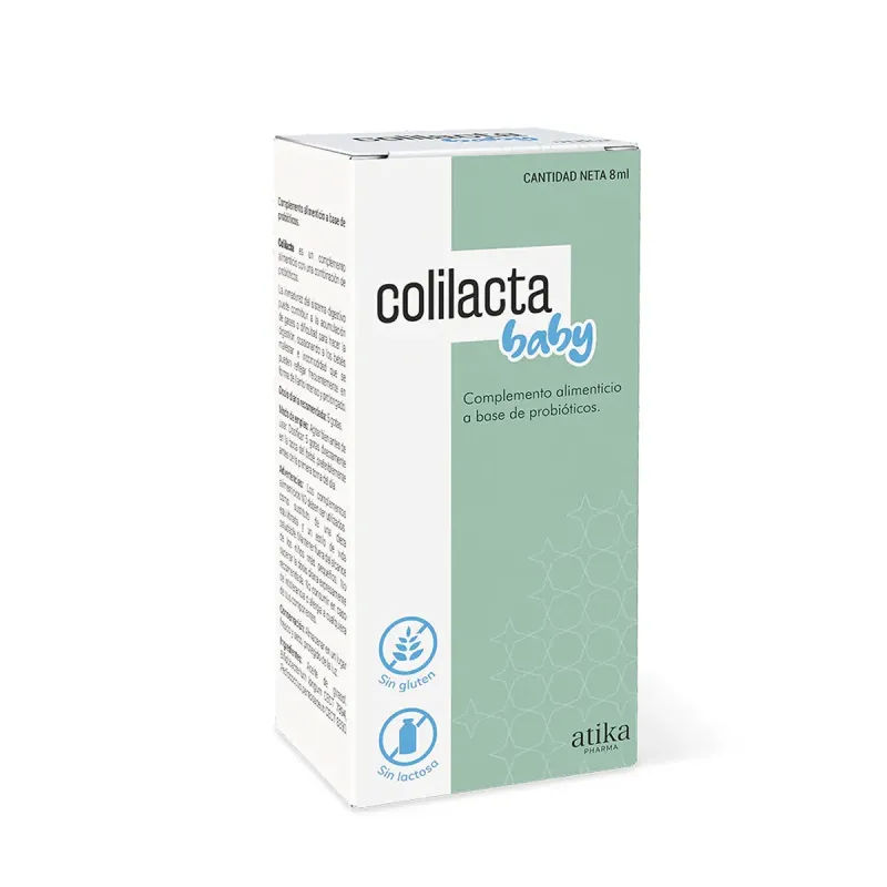 Colilacta es un complemento alimenticio de Atika Pharma en formato de gotas, diseñado específicamente para el alivio de las molestias asociadas al cólico del lactante. Contiene dos cepas probióticas patentadas —Bifidobacterium longum CECT7894 y Pediococcus pentosaceus CECT8330— a una concentración de al menos 1.000 millones de UFC por cada 5 gotas, el volumen correspondiente a la dosis diaria recomendada.