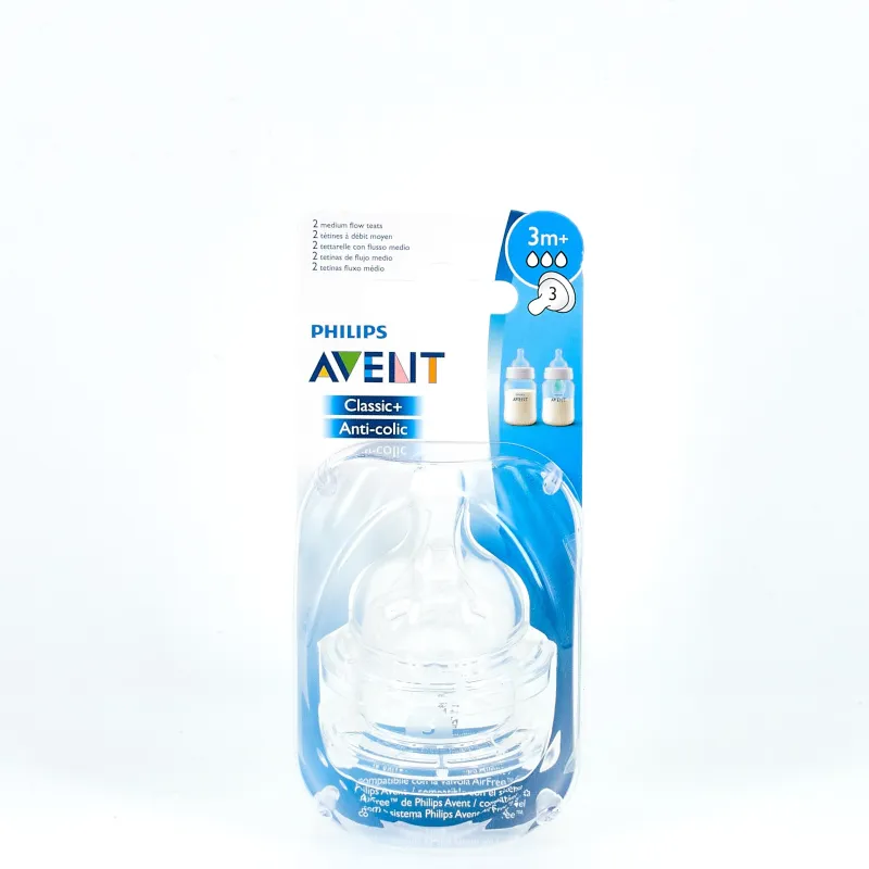 Philips Avent Tetina Anticólicos Flujo Medio +3m es ideal para bebés a partir de los 3 meses. Ayuda a que el bebé realice solo la fuerza necesaria para alimentarse de forma cómoda y agradable. Su exclusivo diseño permite lograr un enganche más natural, similar al pecho materno.