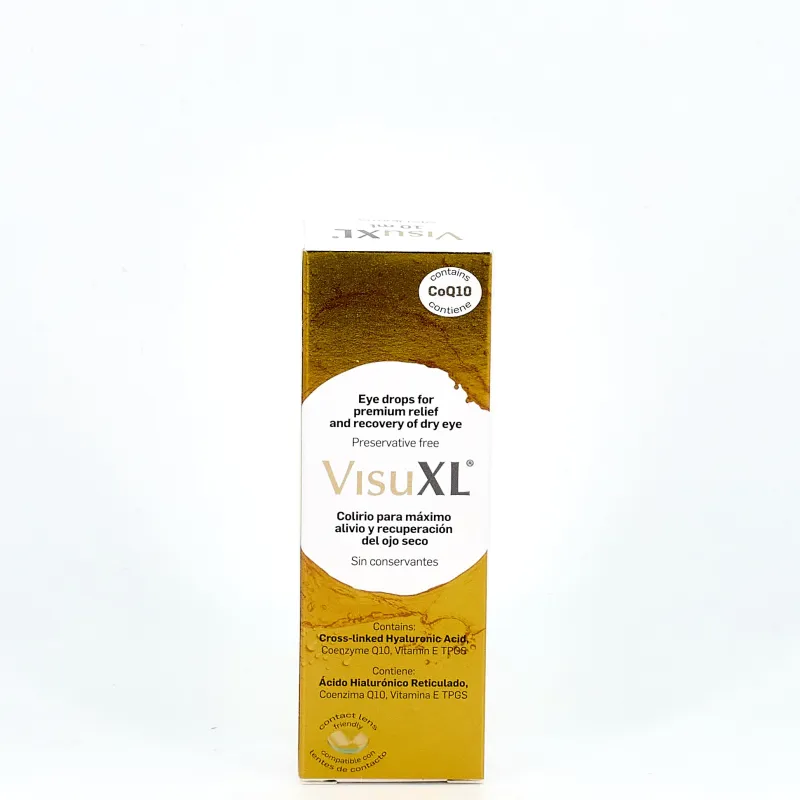 Mientras que el hialuronato de sodio reticulado hace que VisuXL Colirio Ojo Seco pueda emplearse aún con el uso de lentes de contacto, actúe como hidratantes lágrimas.