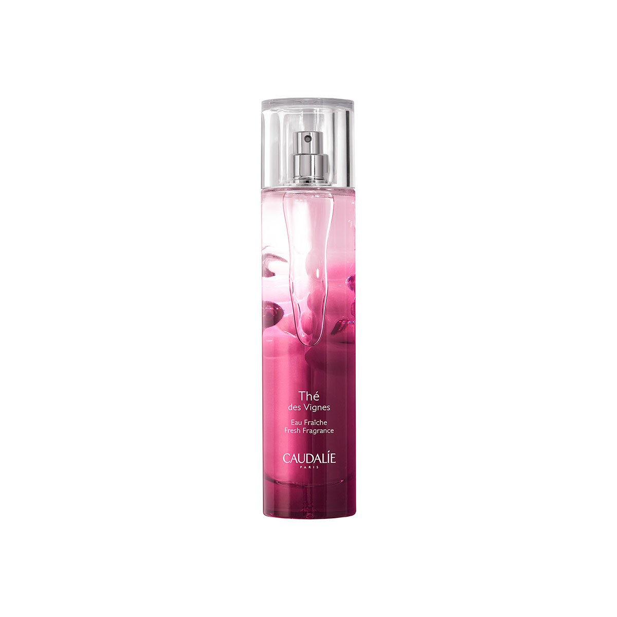 Disfruta del aroma vivificante, floral y amaderado de la fragancia Agua Fresca Thé Des Vignes de Caudalie, en envase de 100 ml.