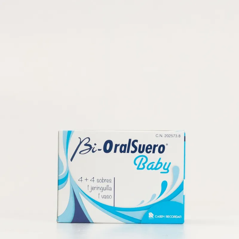 Bi-OralSuero Baby sobres es un producto de rehidratación oral en polvo diseñado para facilitar la administración de electrolitos y líquidos en lactantes y niños. Cada caja incluye 4 sobres con sales de rehidratación hiposódica y 4 sobres con la cepa probiótica Lactobacillus reuteri, junto con un vaso dosificador y una jeringuilla que permiten una dosificación precisa y cómoda. Este formato está indicado para reponer las pérdidas de agua y electrolitos derivadas de episodios de diarrea o trastornos gastrointestinales leves.