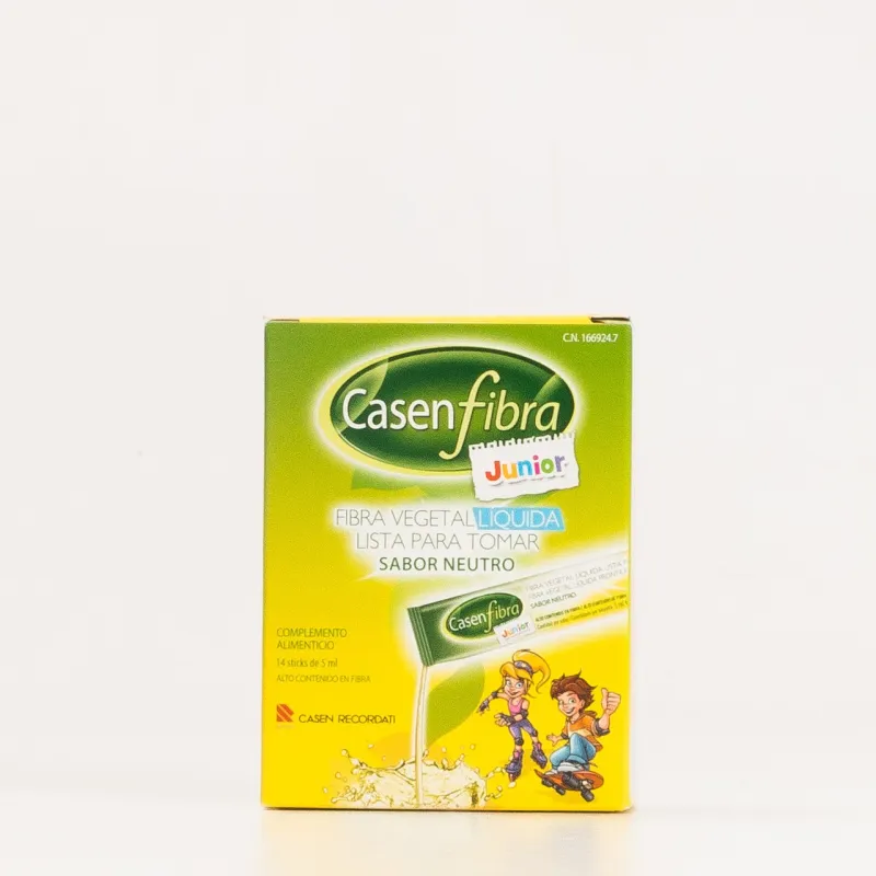 Casenfibra Junior Fibra Vegetal Líquida 14 sobres es un complemento alimenticio que aporta fibra de origen vegetal en formato líquido, especialmente diseñado para niños. La mezcla de fibras solubles se disuelve fácilmente en líquidos o alimentos semisólidos, contribuyendo al aumento de volumen del bolo fecal y al normal funcionamiento de la función intestinal. Su sabor neutro y la presentación en sobres monodosis facilitan su inclusión en la alimentación diaria sin alterar el gusto de zumos, yogures o papillas.