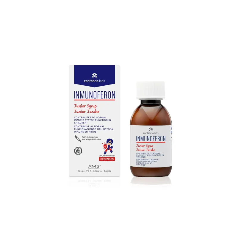 Inmunoferon Junior Jarabe es un complemento alimenticio en formato líquido dirigido a niños a partir de 2 años. Aporta AM3 (glucomanano fosforilado y proteína de soja), propolis, echinácea y vitamina D. Está concebido para integrarse en la dieta habitual, proporcionando nutrientes que intervienen en el funcionamiento normal del sistema inmunitario y en la defensa antioxidante de las células. Este formato líquido facilita la administración en niños y permite su incorporación sencilla a los hábitos alimentarios diarios.