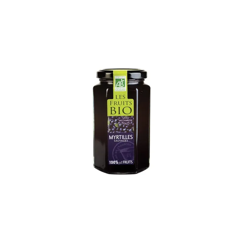 Mermelada de arándanos bio sin azúcares añadidos, elaborada con fruta ecológica para un sabor natural y antioxidante.