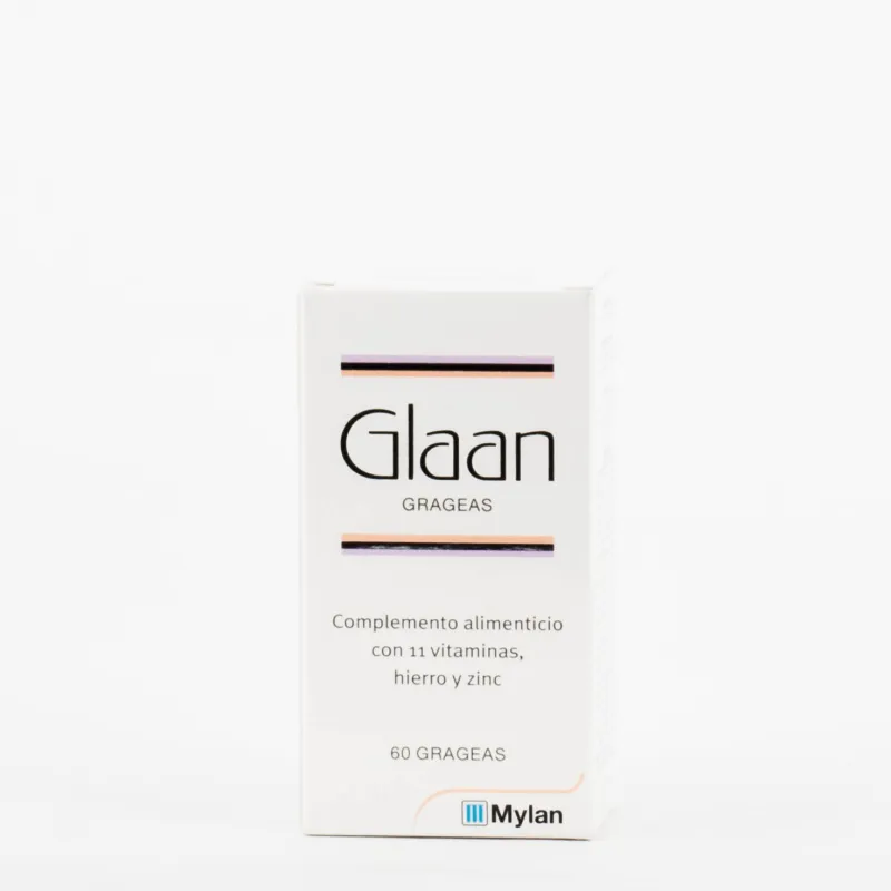 Glaan, 60 grageas es un complemento alimenticio que aporta micronutrientes esenciales como hierro, zinc y vitaminas A, C, B12 (cobalamina) y B7 (biotina). Estos nutrientes participan en la formación de la queratina, el desarrollo de las células de la piel y el metabolismo de proteínas, contribuyendo al mantenimiento normal de cabello, uñas y piel dentro de una dieta equilibrada.