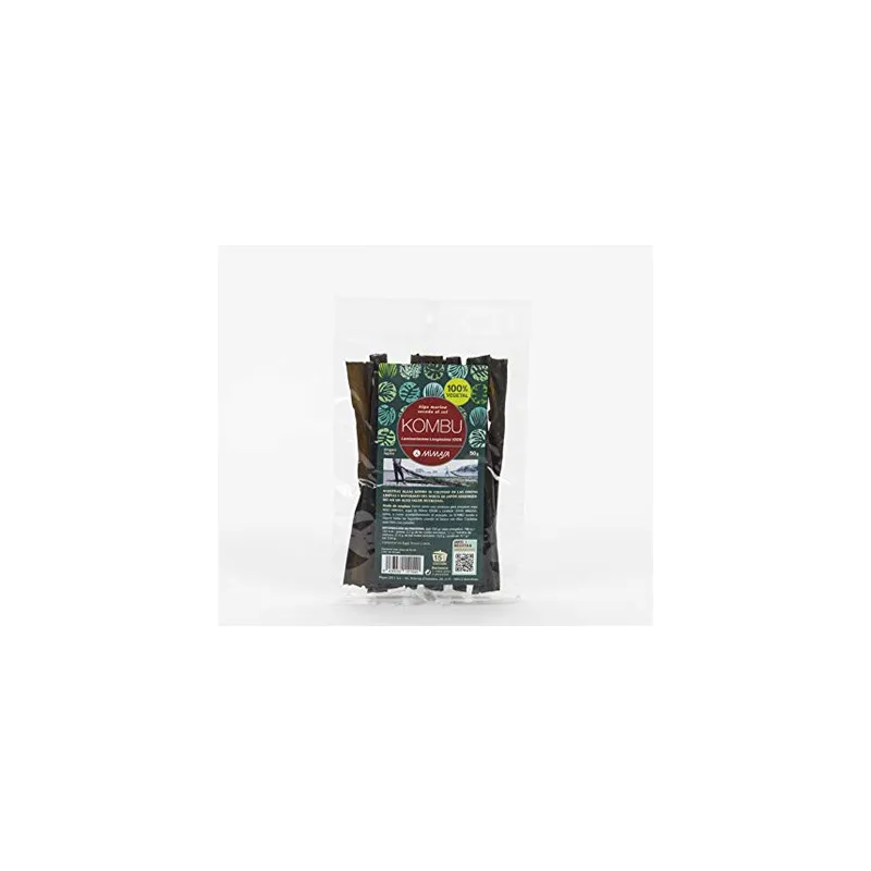 Kombu Japon 50 g de Mimasa es un alga marina seca, tradicional en la cocina japonesa. Se comercializa en paquetes de 50 g y puede incorporarse en sopas, caldos, ensaladas o guisos para aportar sabor umami y un perfil nutricional completo.