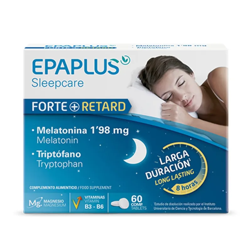 Epaplus Sleepcare Sueño Retard es un complemento alimenticio formulado para apoyar los ritmos de descanso de forma natural. Está compuesto por melatonina y triptófano en un comprimido de liberación prolongada, diseñado para ofrecer una liberación inmediata y otra mantenida a lo largo de la noche. La liberación rápida de melatonina contribuye a reducir el tiempo necesario para conciliar el sueño, mientras que la fase prolongada aporta un suministro gradual de principios activos que ayuda a mantener niveles adecuados de melatonina durante varias horas.