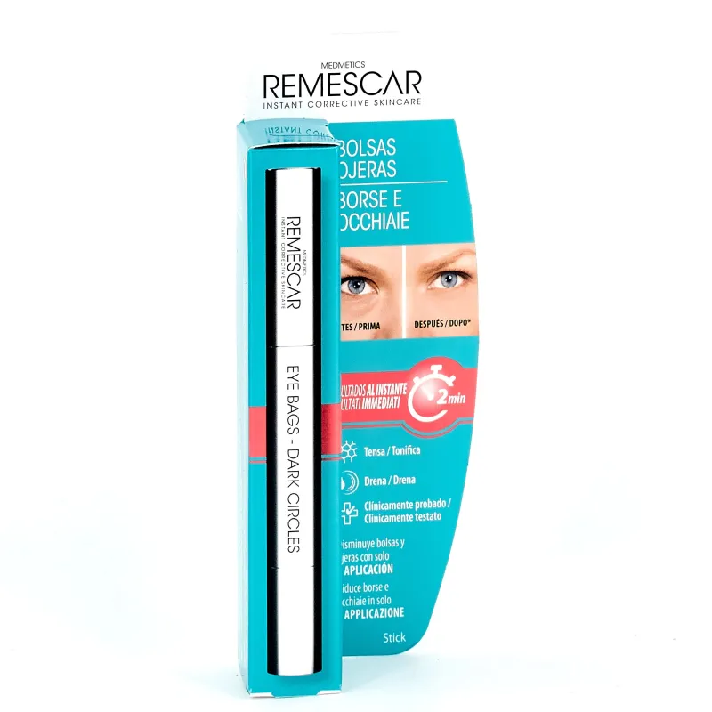 Remescar Crema bolsas y ojeras stick es un tratamiento corrector de rápida aplicación indicado especialmente para ayudar a disminuir los signos de la edad que se hacen visibles en el área del contorno de ojos.