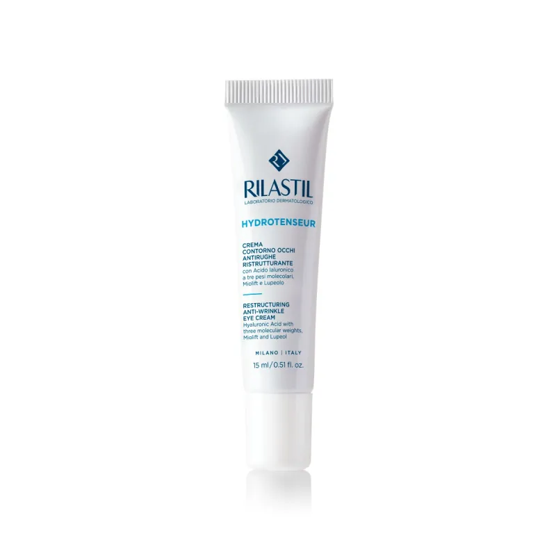 Rilastil Hydrotenseur Contorno Ojos es un tratamiento que se enfoca en combatir directamente las arrugas, bolsas y ojeras en la zona periocular.