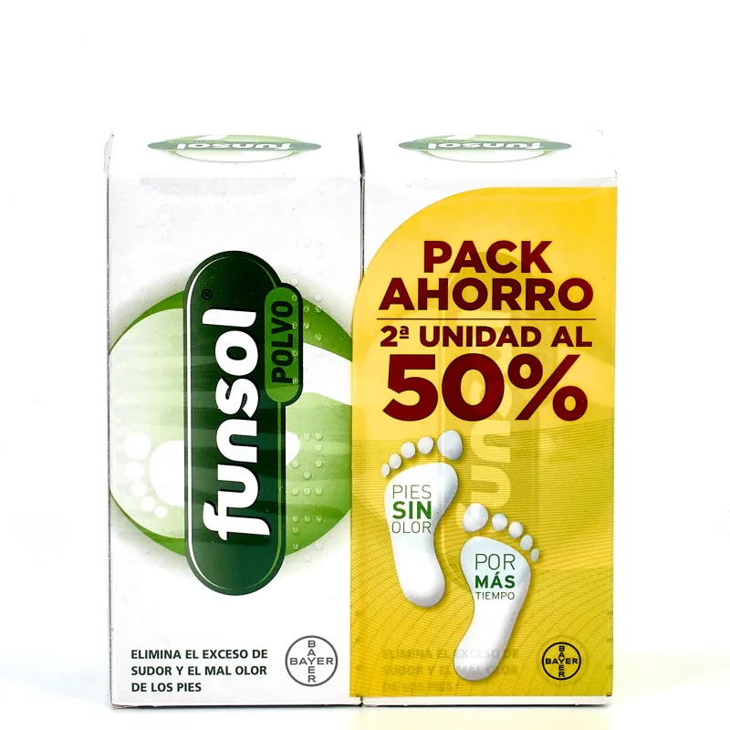 Funsol en polvo absorbe malos olores en pies y zapatos eliminando el sudor excesivo con acción antiapelmazante.