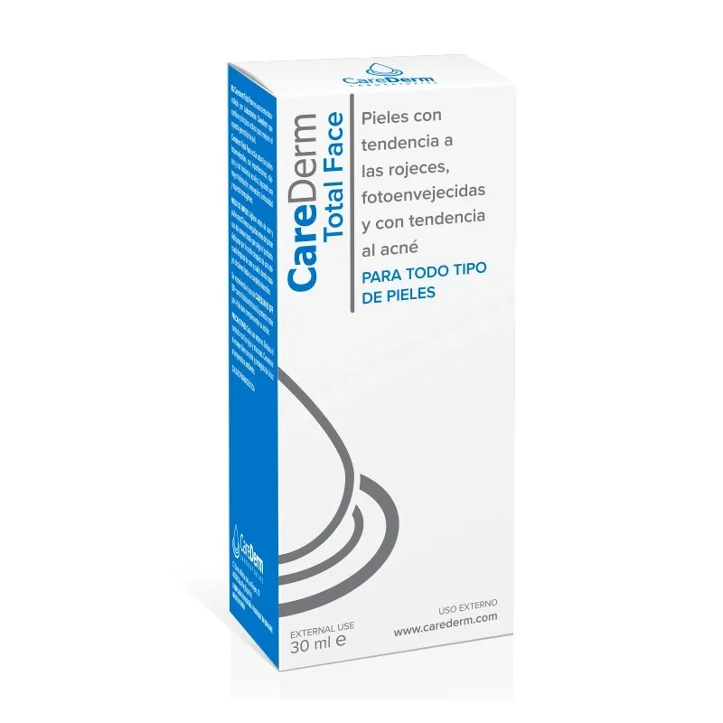 Carederm Total Face se presenta en un envase de 30 ml con dosificador, que facilita la aplicación precisa del producto. Su textura ligera y de rápida absorción permite una aplicación cómoda y agradable, sin dejar sensación grasa en la piel.