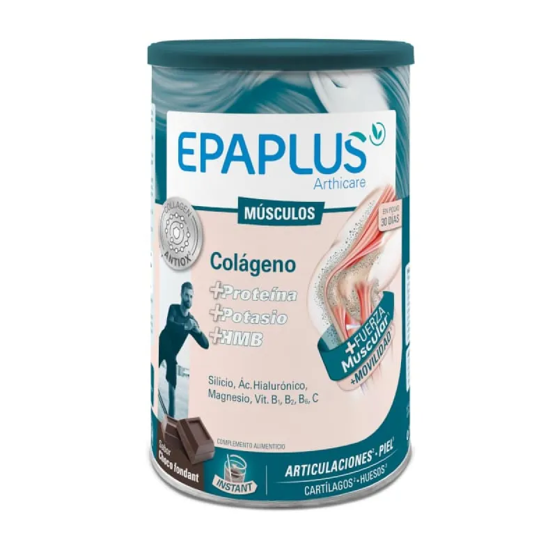 Epaplus Arthicare Músculos Sabor Choco Fondant es un complemento alimenticio en polvo diseñado para complementar la ingesta dietética de nutrientes implicados en el mantenimiento normal de la función muscular y articular. Incorpora una combinación de ingredientes seleccionados por sus características nutricionales, sin atribuir propiedades terapéuticas directas al producto.