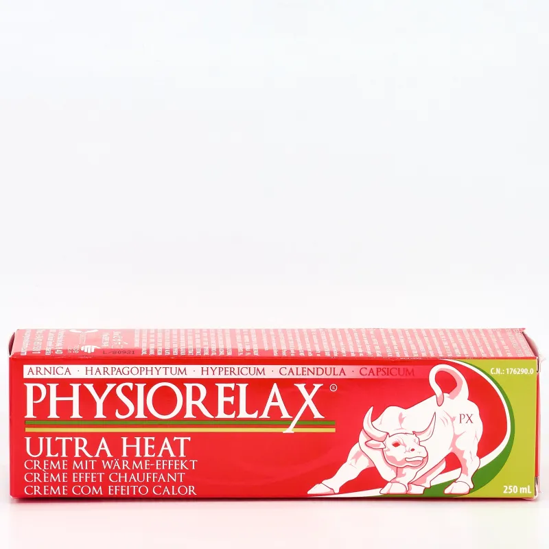 Physiorelax Ultra Heat Masaje Deportivo es un producto diseñado para intentar ayudar a generar calor localizado durante la práctica deportiva. Este contiene ingredientes activos de la caléndula y la helenalina, los cuales son conocidos por sus propiedades antioxidantes.