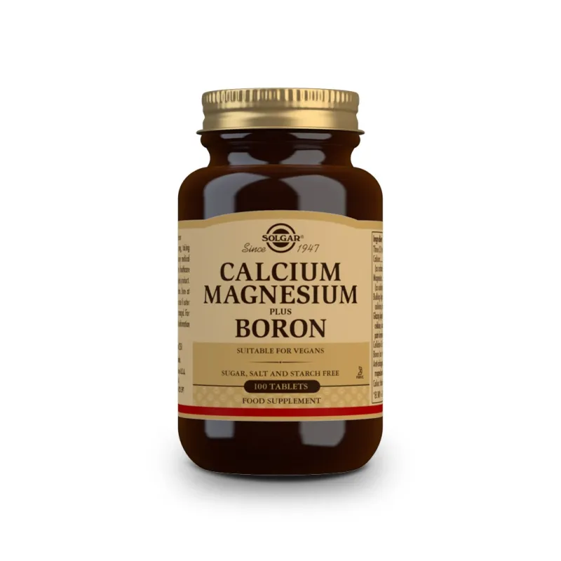 Solgar Ca/Mg Plus Boro es un complemento alimenticio en comprimidos que combina calcio y magnesio en forma de citrato junto con boro. El calcio y el magnesio son minerales esenciales para el mantenimiento de la función normal de los músculos, huesos y del sistema nervioso. El boro está incluido como coadyuvante para apoyar la regulación del metabolismo mineral y la función de otros nutrientes. Su formulación es apta para dietas veganas y kosher, y los comprimidos presentan un formato fácil de tomar que se integra de forma sencilla en la rutina diaria.