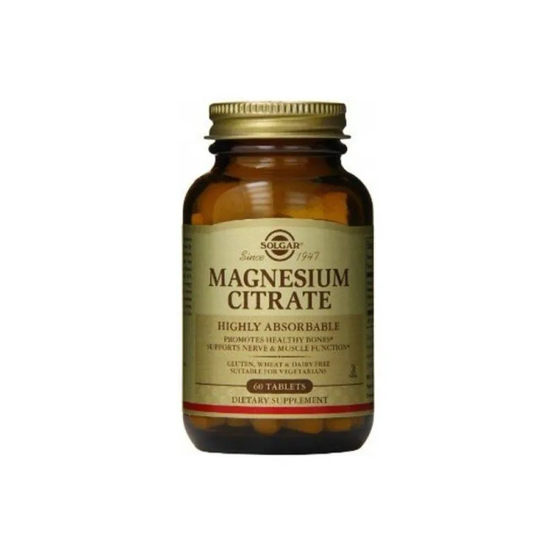 Solgar Citrato de Magnesio es un complemento alimenticio formulado a base de citrato de magnesio, diseñado para aportar este mineral en una forma con elevada biodisponibilidad. El magnesio contribuye al funcionamiento normal de los músculos, al mantenimiento de la función nerviosa y a la síntesis de proteínas dentro de una dieta variada.