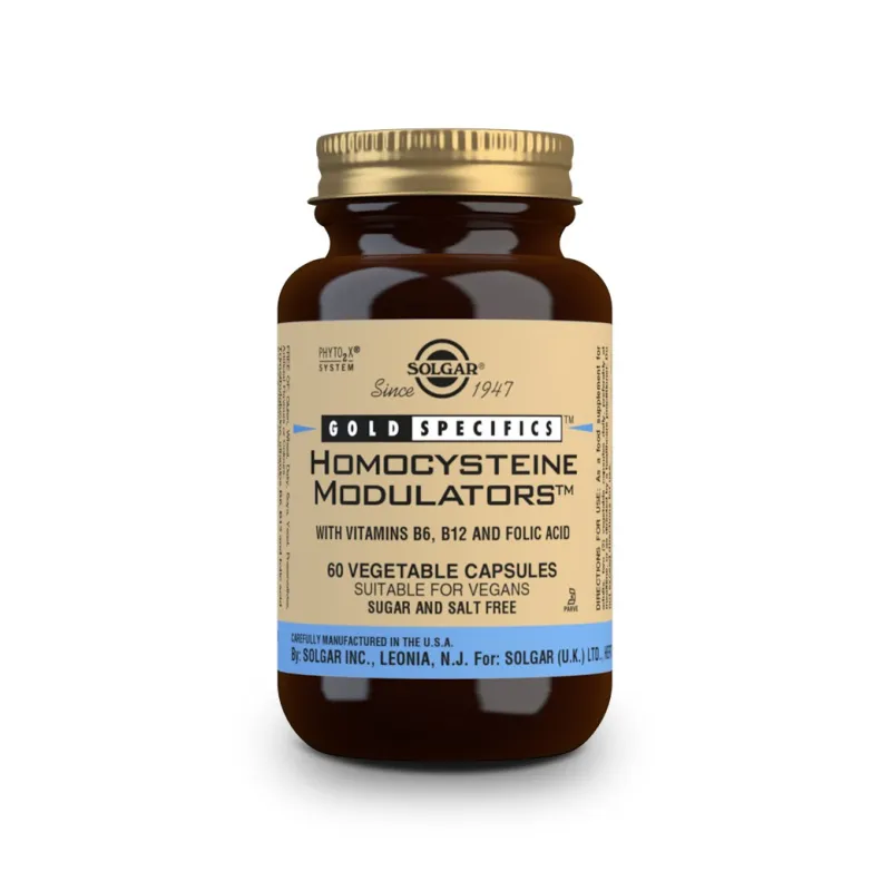 Solgar GS Homocysteine Modulators es un suplemento alimenticio que ayuda a evitar que el metabolismo de las proteínas cause acumulación de homocisteína. Su fórmula contiene todos los nutrientes necesarios para mantener un correcto funcionamiento del metabolismo.
