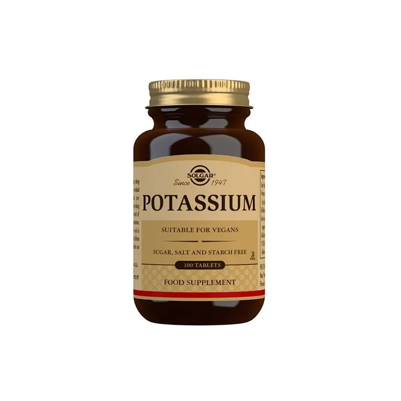 Solgar Potasio (como Gluconato) es un complemento alimenticio que aporta potasio, un electrolito esencial para diversas funciones fisiológicas. Cada comprimido contiene 99 mg de potasio en forma de gluconato, una sal orgánica que mejora la tolerancia gástrica y la absorción en el tracto digestivo. Este complemento está formulado sin gluten ni lactosa y es apto para dietas veganas y kosher, lo que lo hace adecuado para diferentes hábitos alimentarios. Su presentación en comprimidos ofrece una dosificación cómoda y precisa, adaptándose a las necesidades de consumo diario de adultos.