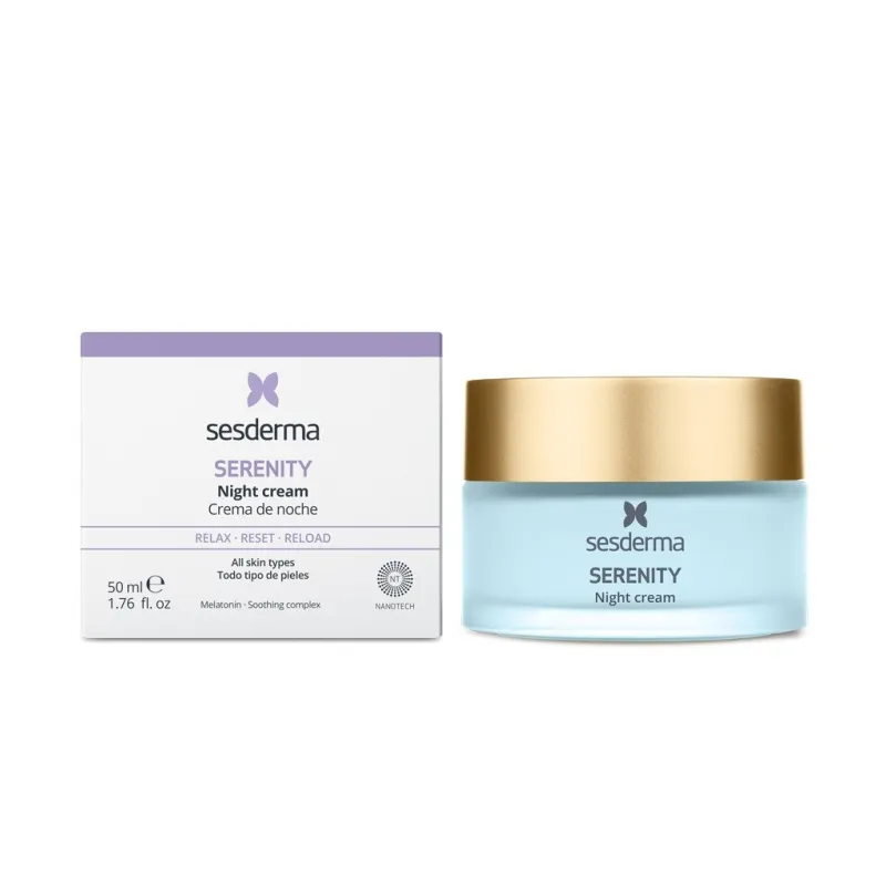 Sesderma Serenity Crema de noche es un tratamiento cosmético de noche de alta efectividad que basa su formulación en la melatonina. Este activo lleva a cabo su función durante la noche, reforzando la acción del descanso nocturno sobre la piel, logrando estimular las defensas antioxidantes de la piel.