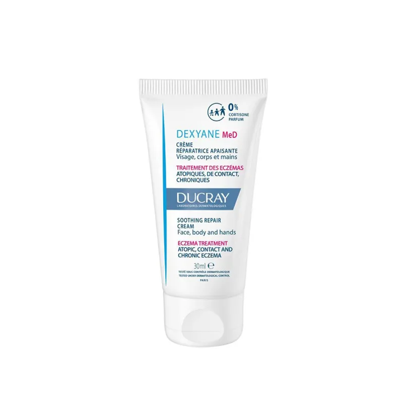 Disponible en un práctico formato de 30 ml, Ducray Dexyane MeD Crema Reparadora Calmante es adecuada para llevar en el bolso o tener a mano en casa para cuando se necesite un alivio rápido.