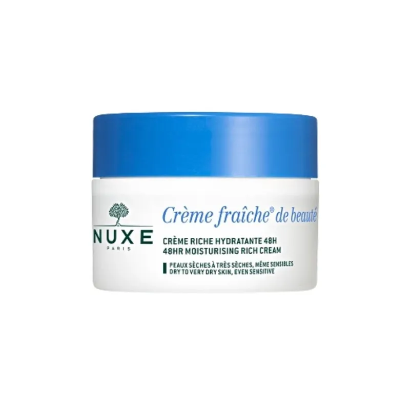 La Crema Fraîche de Beauté (Belleza) enriquecida hidratante 48 horas de Nuxe está especialmente diseñada para hidratar y nutrir las pieles secas y sensibles que presentan falta de hidratación, sin dañarlas ni irritarlas.