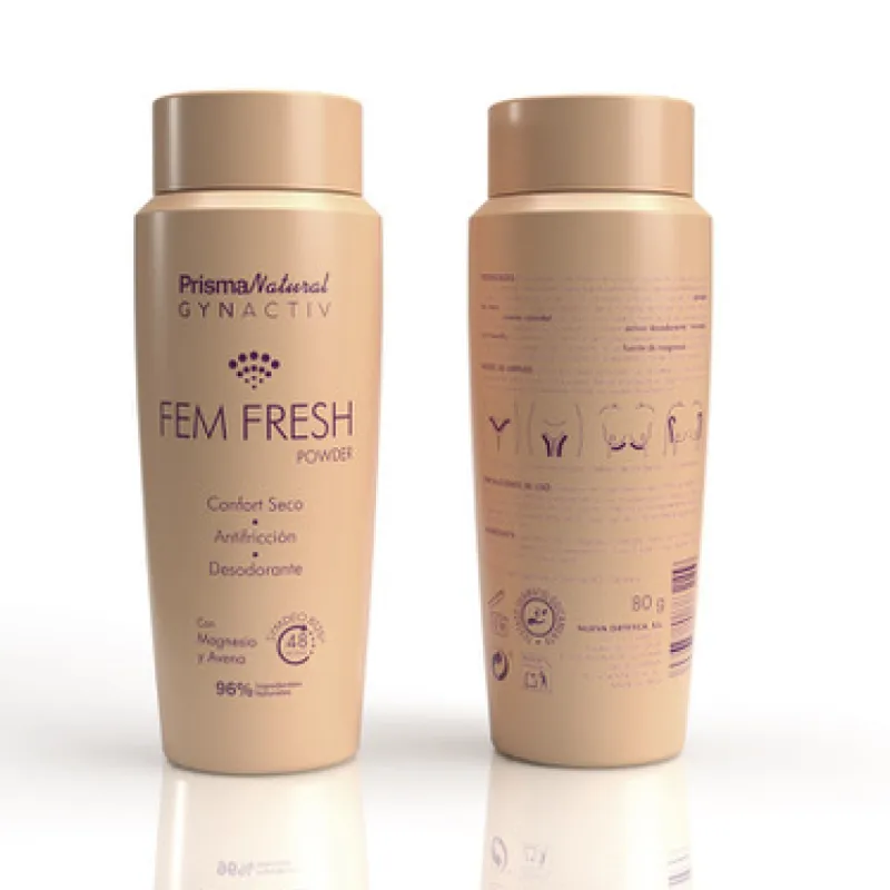 Gynactiv Fem Fresh de Prisma Natural es un polvo desodorante corporal diseñado para proporcionar una sensación de frescura y confort durante todo el día. Su composición está enriquecida con almidón de maíz, avena coloidal y magnesio, ingredientes que ayudan a absorber la humedad, calmar la piel y mantenerla hidratada.