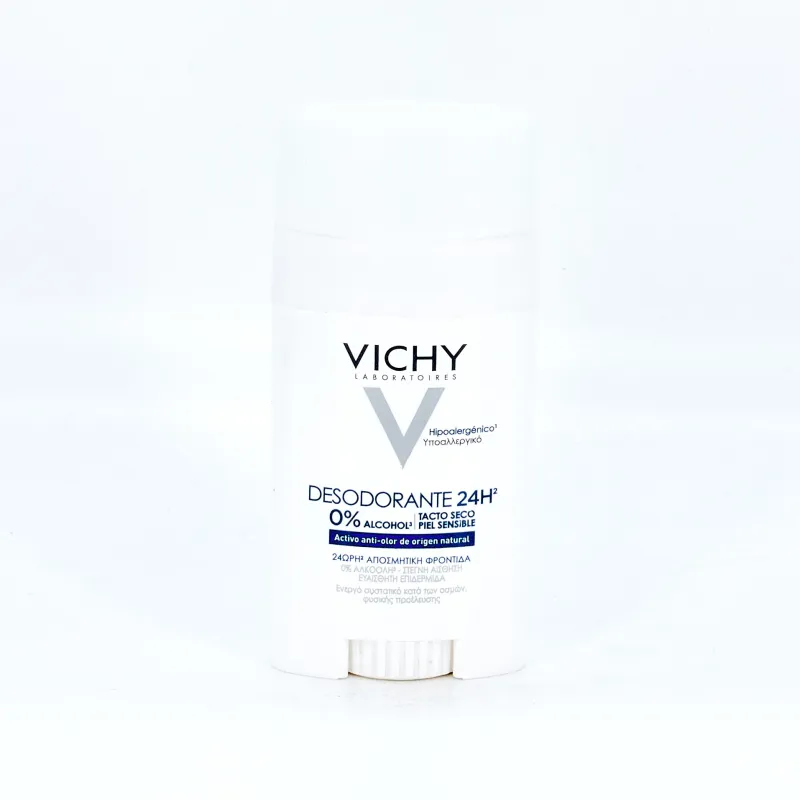 El desodorante Vichy Deo Stick 24H Sin Sales de Aluminio, es un desodorante muy respetuoso con la piel gracias a su cuidado composición.