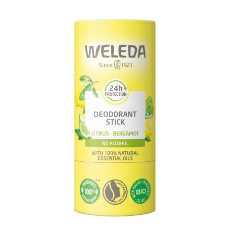 Weleda Desodorante Stick Citrus es un desodorante en formato stick elaborado con ingredientes de origen natural, diseñado para proporcionar una protección eficaz contra los malos olores durante 24 horas. Su aroma fresco y energizante a cítricos brinda una sensación de vitalidad y bienestar.