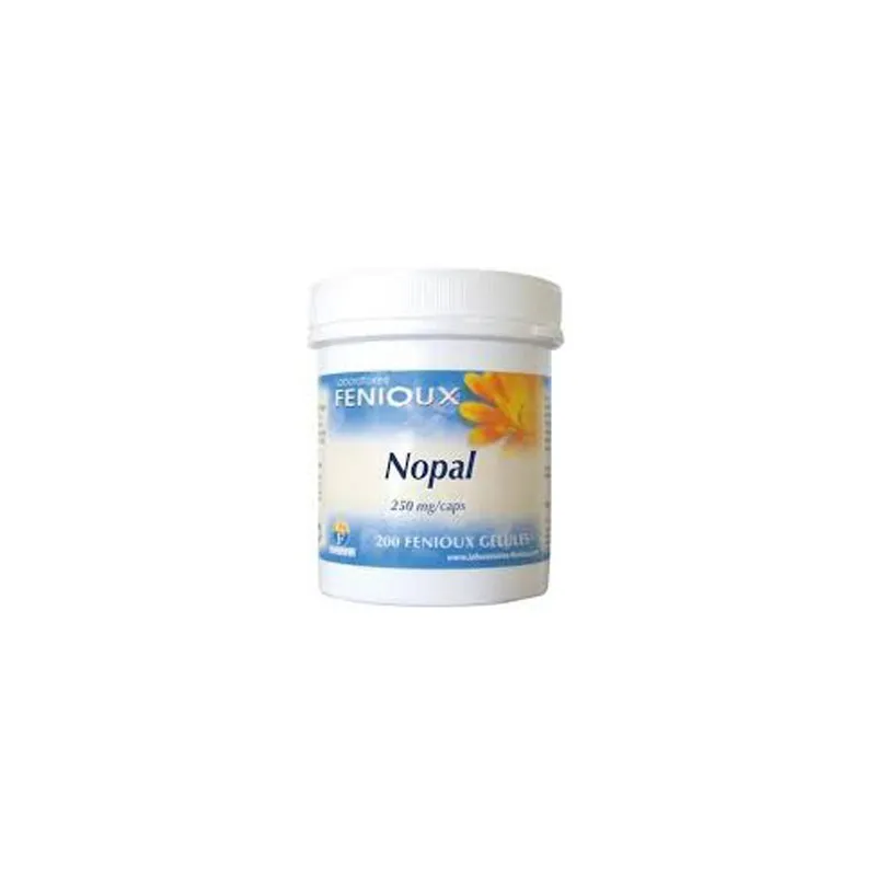 Nopal 200 Cápsulas de Fenioux es un complemento alimenticio elaborado a partir de polvo de nopal (Opuntia ficus-indica) seco y micronizado. Este cactus es rico en fibra soluble e insoluble y en mucílagos, que pueden favorecer el tránsito intestinal y aumentar la sensación de saciedad. Sus componentes pueden contribuir al equilibrio de los niveles de lípidos en sangre, al apoyo de los procesos digestivos y al mantenimiento de una función normal del sistema gastrointestinal dentro de una dieta equilibrada y un estilo de vida saludable.