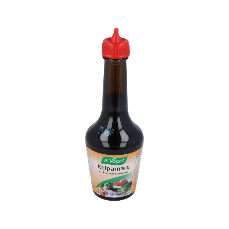 A. Vogel Kelpamare es un sazonador natural formulado con extracto de alga kelp y salsa de soja que realza el sabor de numerosas preparaciones. Su fórmula sin glutamato de sodio ni conservantes artificiales permite disfrutar de un aliño marino de origen vegetal en platos calientes o fríos, aportando una textura líquida de fácil dosificación.